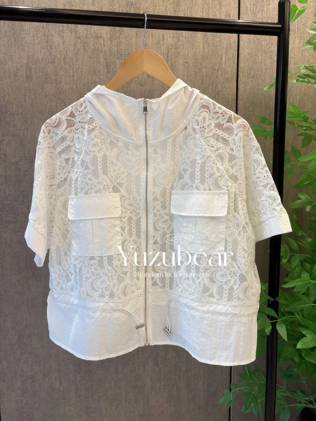 SS73 韓國高質lace有帽拉鏈外套