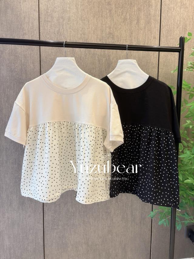 SS78 韓國高質波點拼布娃娃blouse