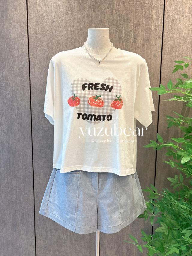 SS95 韓國高質番茄格子心心可愛全棉T-shirt