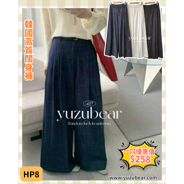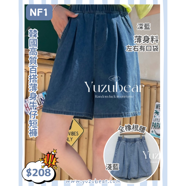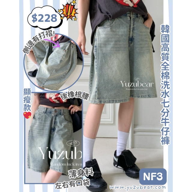 NF3 韓國高質全棉側邊褶洗水七分牛仔褲