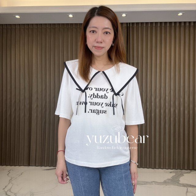 SH1 韓國蝴蝶結拼色邊全棉100%T-shirt