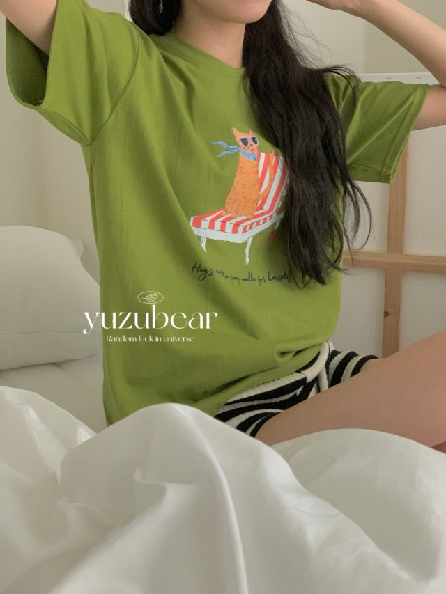 TS14 韓國高質貓貓沙灘椅全棉T-shirt