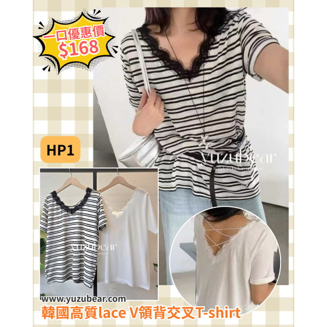 HP1 韓國高質lace V領背交叉T-shirt
