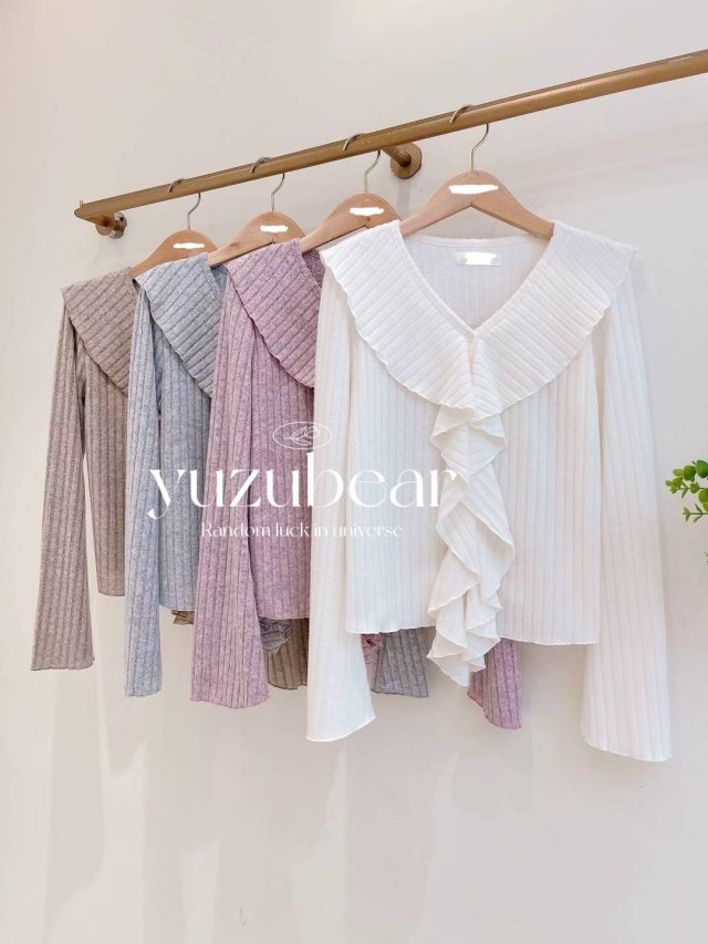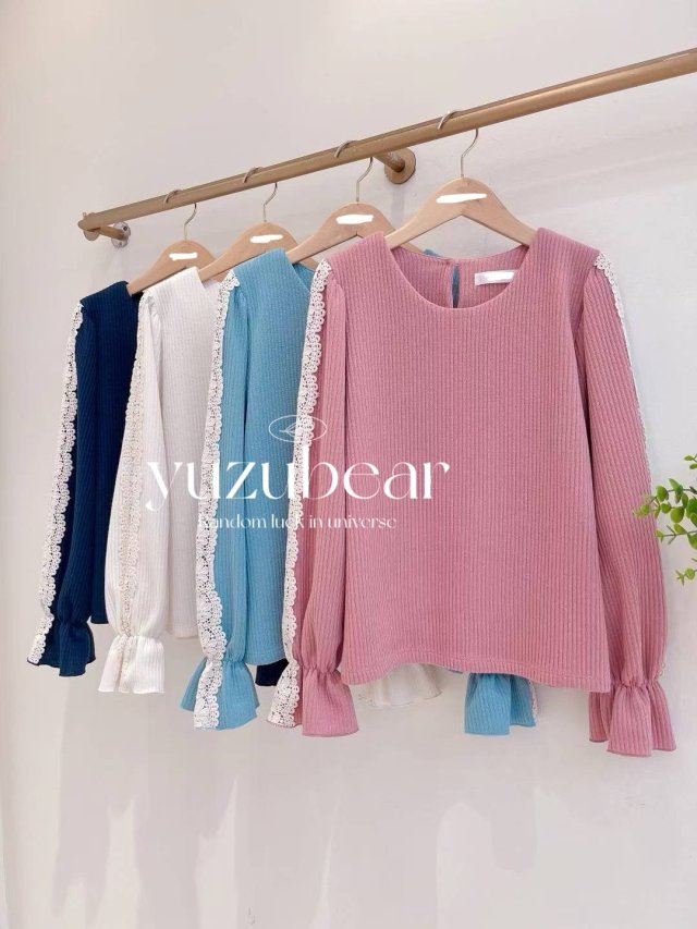 AU174 韓國高質lace邊側鈕皺皺紋冷衫