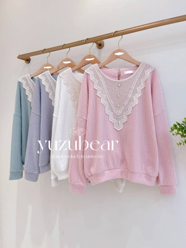 AU165 韓國高質蝴蝶結lace邊間條冷衫