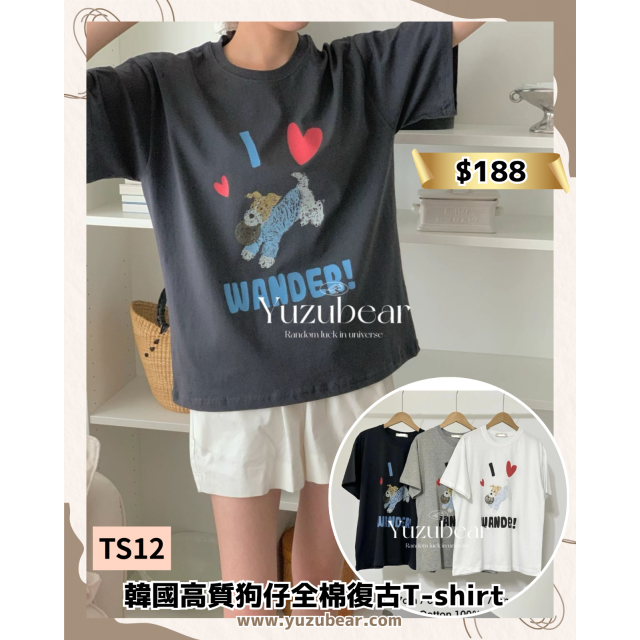 TS12 韓國高質狗仔全棉復古T-shirt