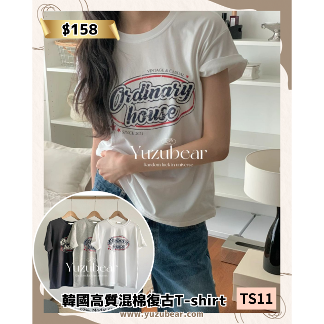 TS11 韓國高質混棉復古T-shirt
