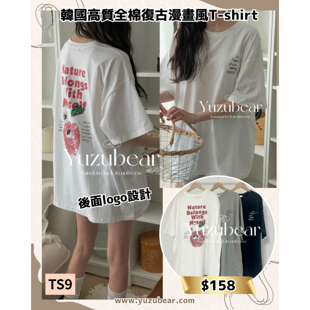 TS9 韓國高質全棉復古漫畫風T-shirt