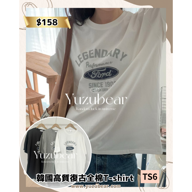 TS6 韓國高質復古全棉T-shirt
