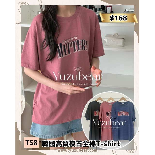 TS8 韓國高質復古全棉T-shirt