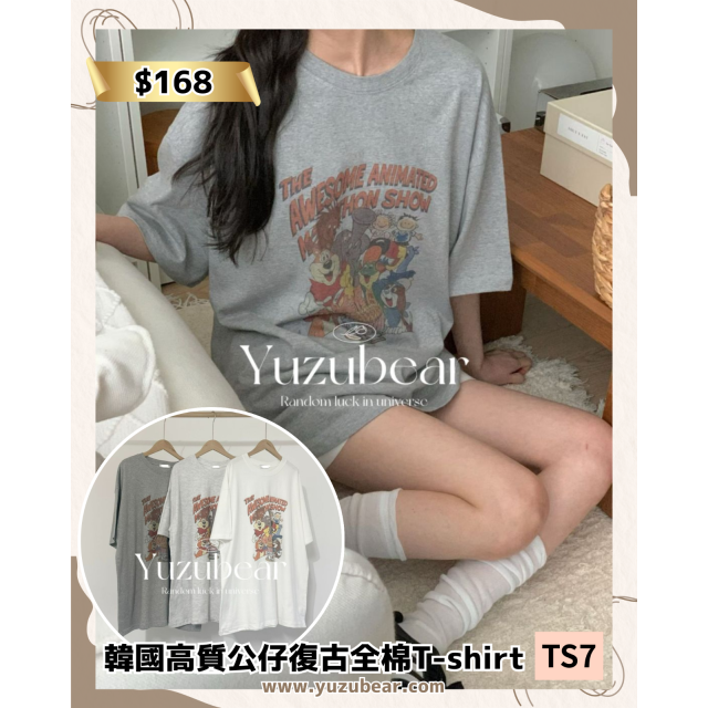 TS7 韓國高質公仔復古全棉T-shirt