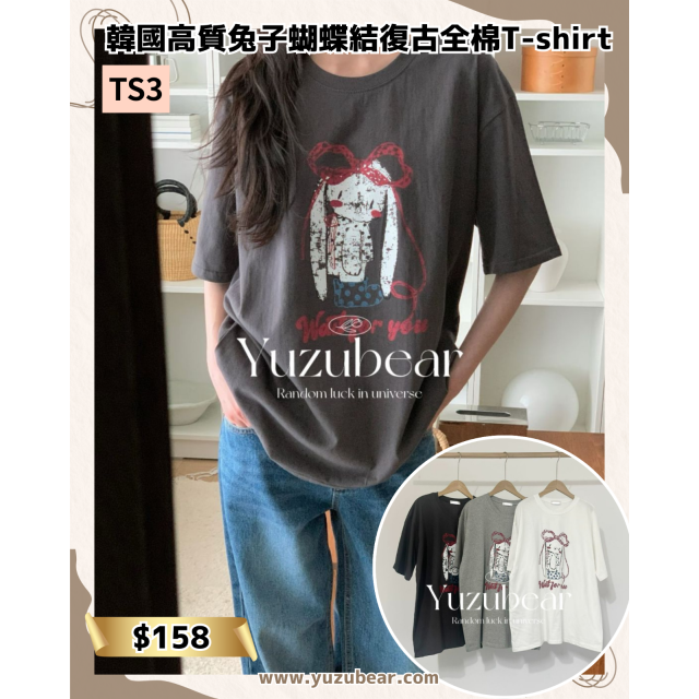 TS3 韓國高質兔子蝴蝶結復古全棉T-shirt