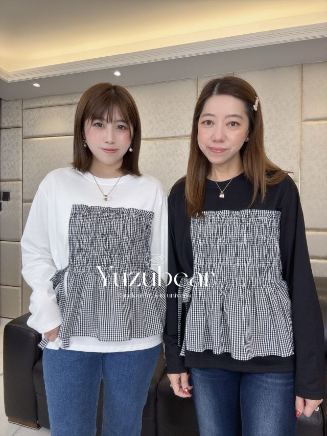 SS4 韓國高質彈性波浪邊暗格紋上衣
