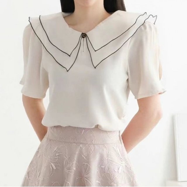 【現貨】韓國女裝 -韓國雙層領可愛減齡OL上衣 灰藍色現貨*
