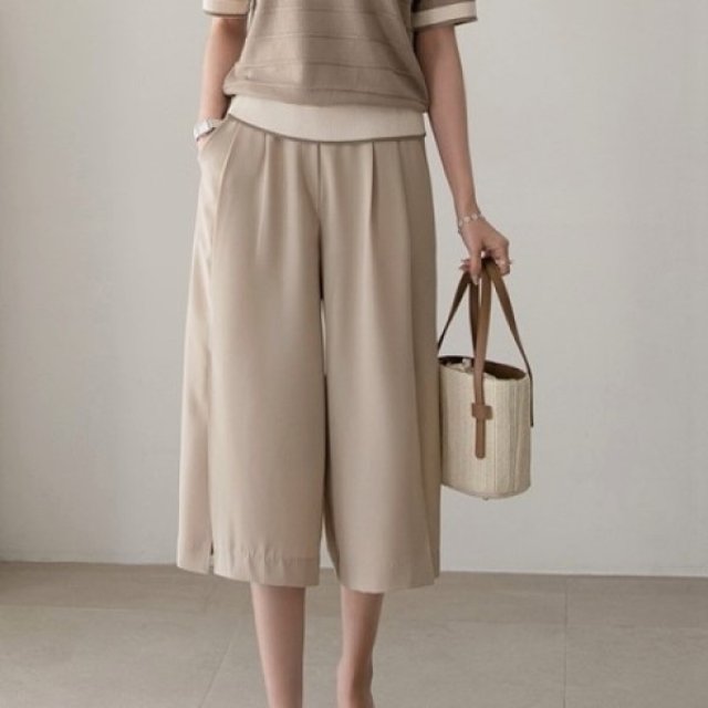 韓國女裝- 清涼橡根頭彈性中褲 米色現貨