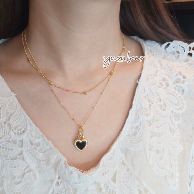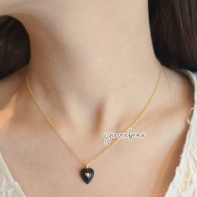 NA18 - 韓國純銀925 黑色心心鍍金頸鏈