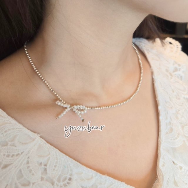 NA12 - 韓國純銀925頸鏈 + 珍珠蝴蝶結