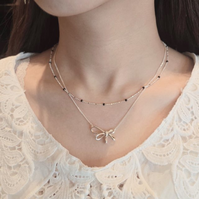 NA16 - 韓國純銀925花花蝴蝶結頸鏈