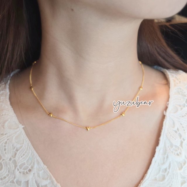 NA20 - 韓國純銀925心心鍍金幼頸鏈