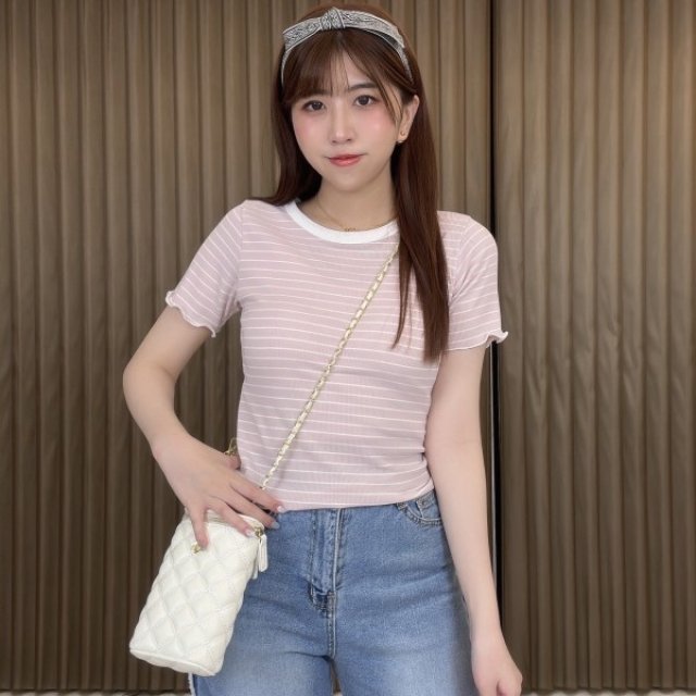 韓國女裝 - da212 間條波浪邊透氣彈性上衣