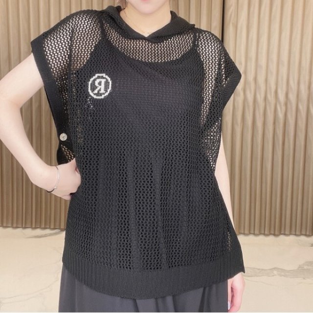 韓國女裝- 型格洞洞網針織馬甲 黑色現貨*