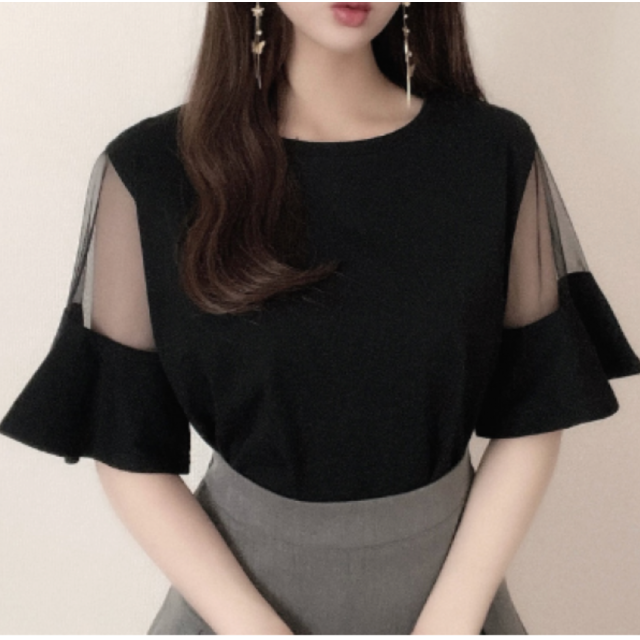 日本女裝- 荷葉雪紡袖T-shirt 現貨*