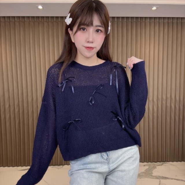 韓國女裝 - da137 泡泡袖蝴蝶結針織衫