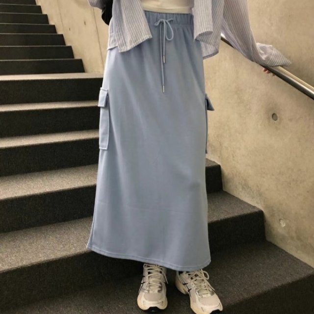 韓國女裝 - da56 側邊口袋休閑長裙 *現貨