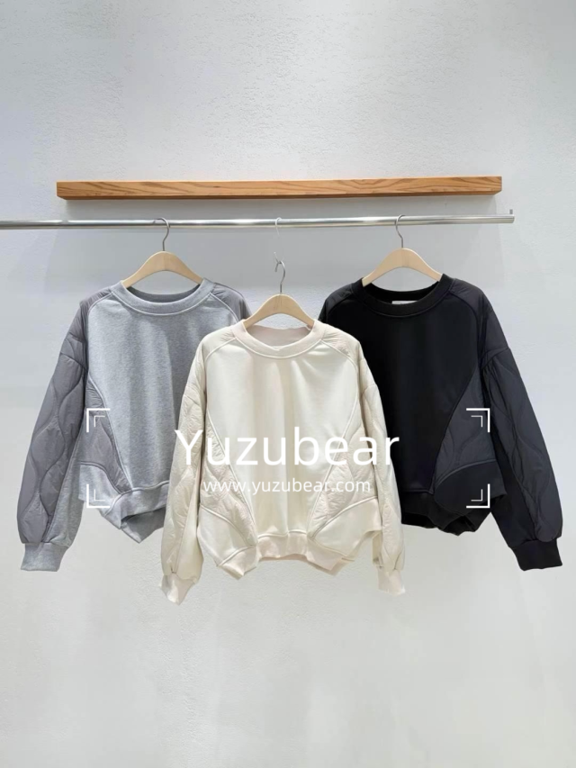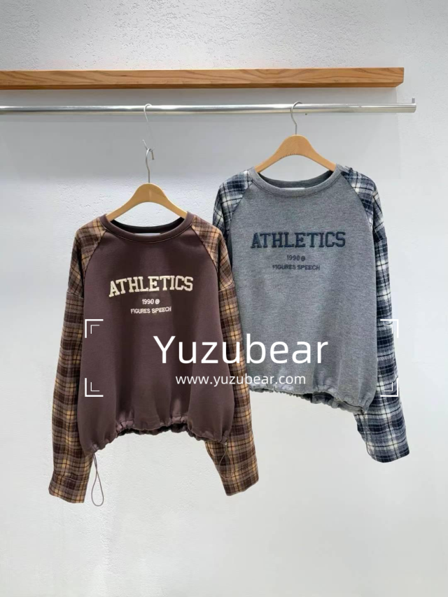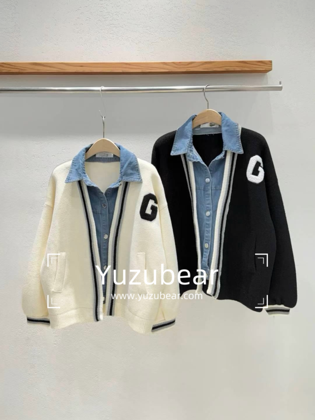 IA23 韓國高質假兩件牛仔拼麻花紐紋冷衫