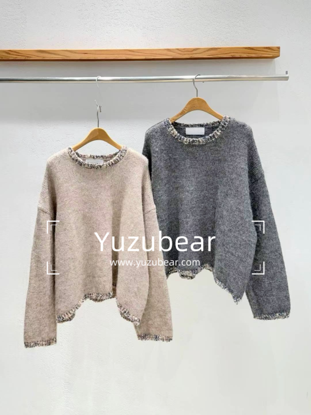 au115 韓國高質花花刺綉圓領冷衫(羊毛6%)