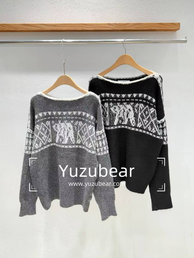 au116 韓國高質大花花圓領冷衫(羊毛6%)