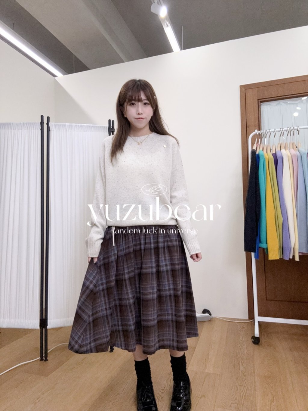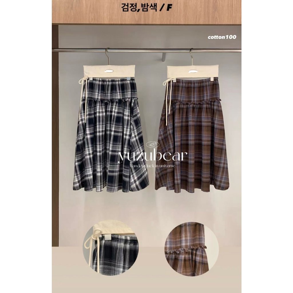 NE22 韓國高質側蝴蝶結復古格子中長裙
