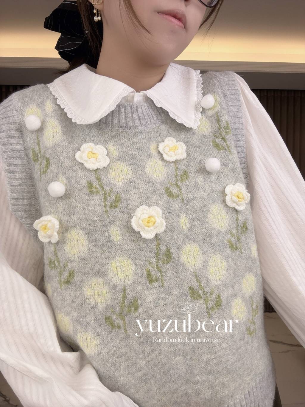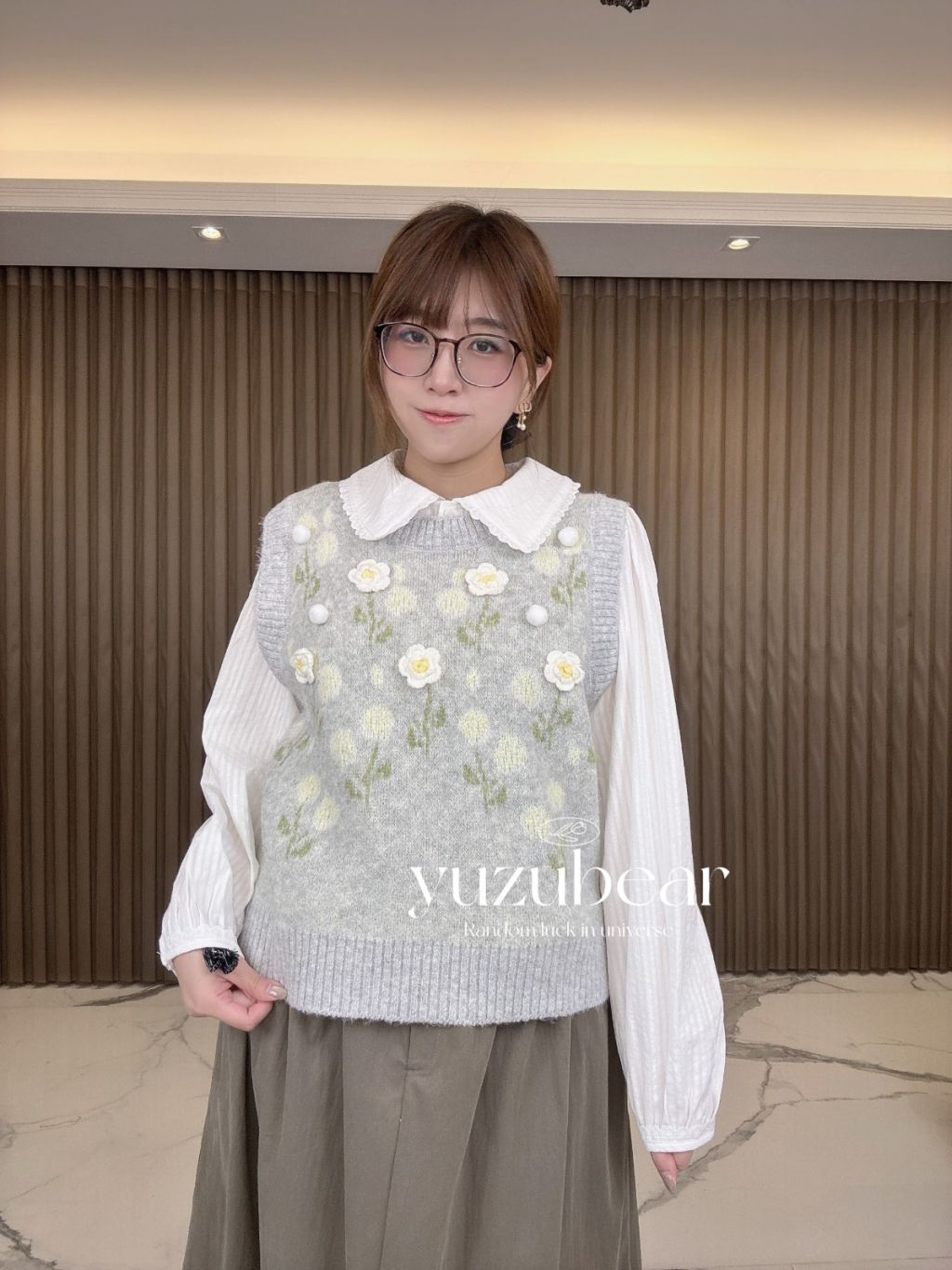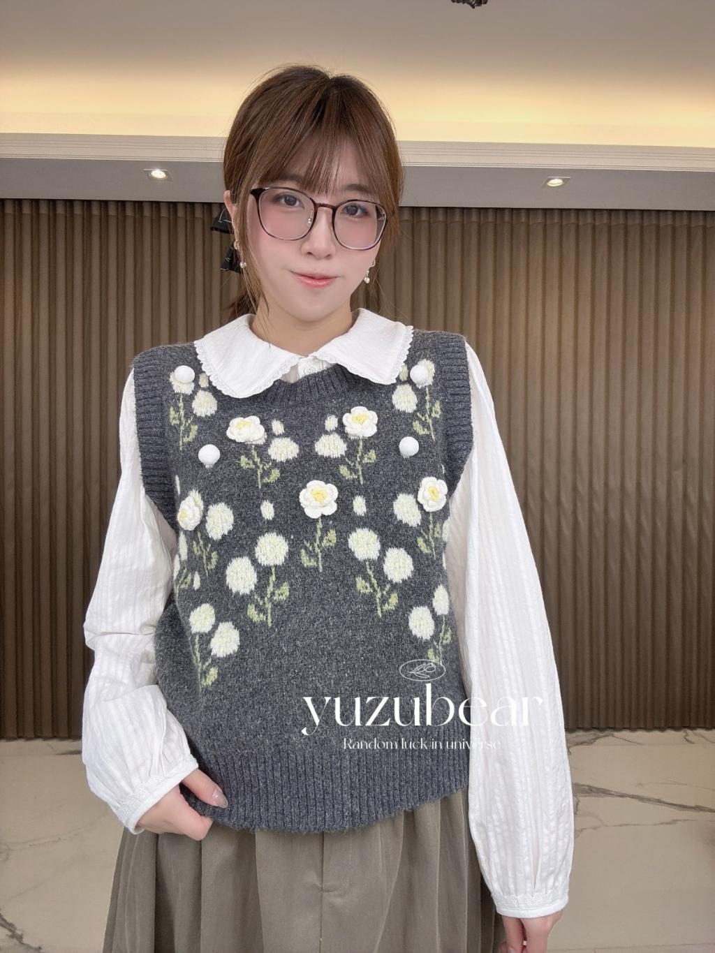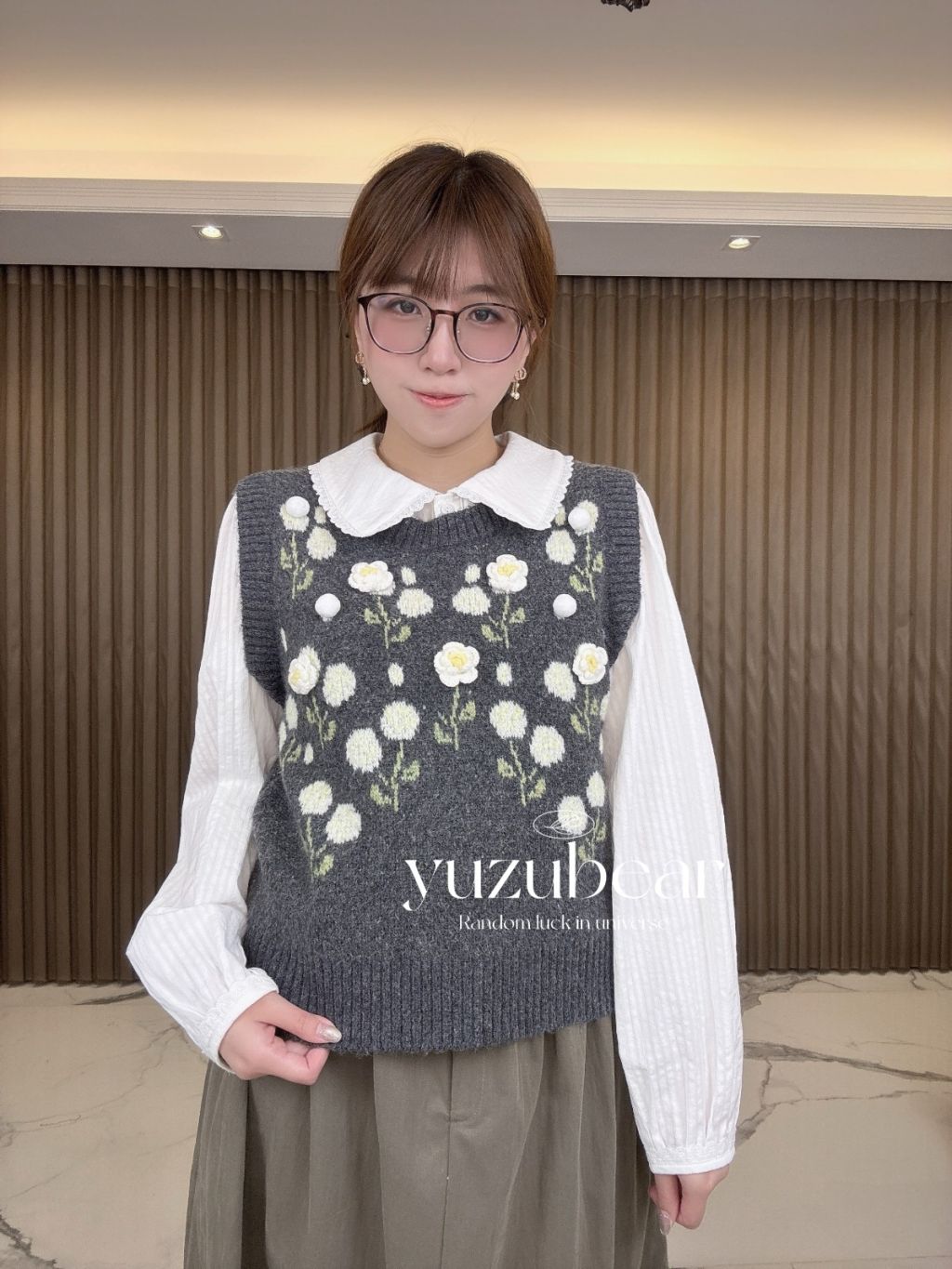 AU58 韓國高質刺綉玫瑰冷衫背心
