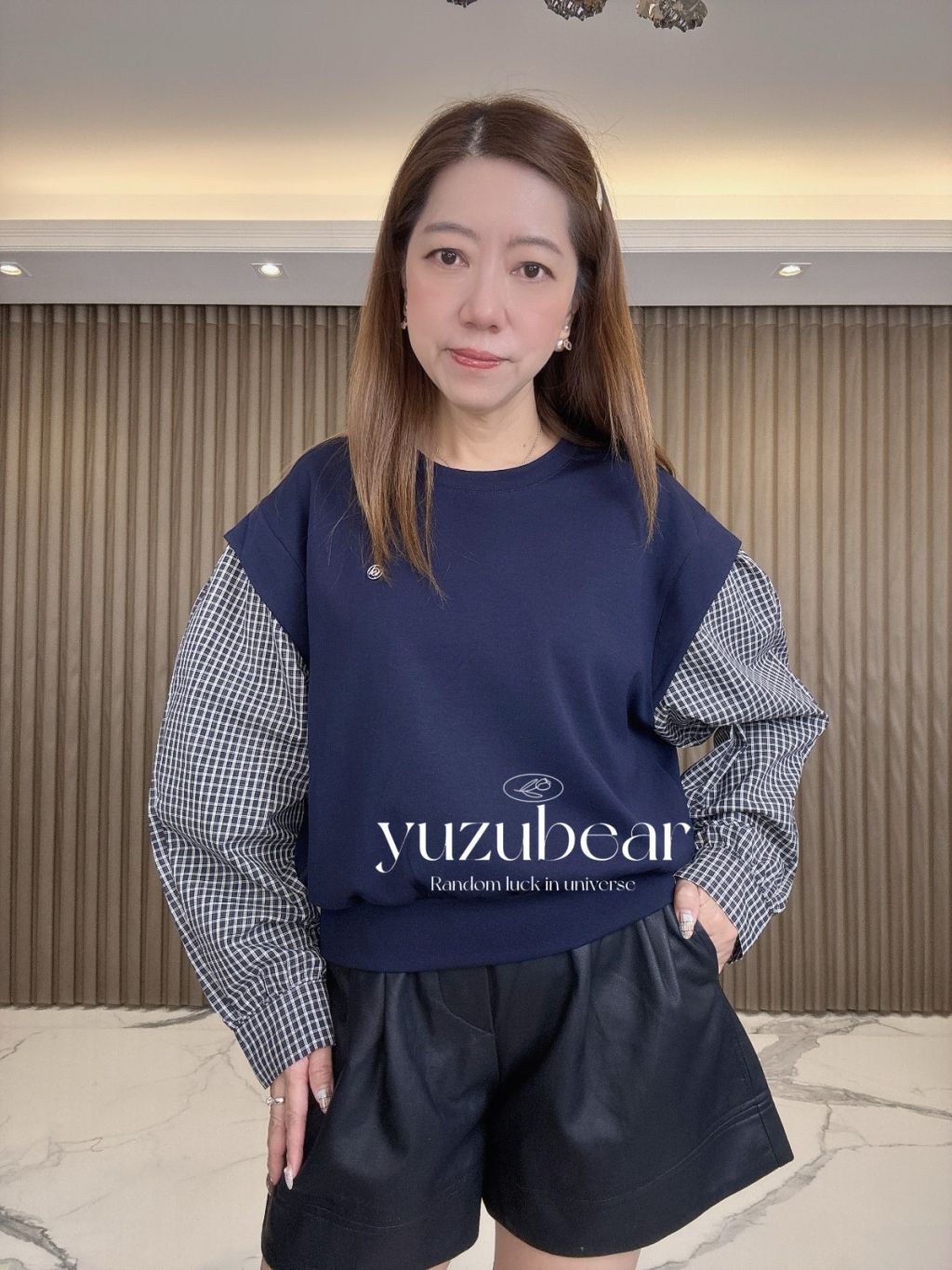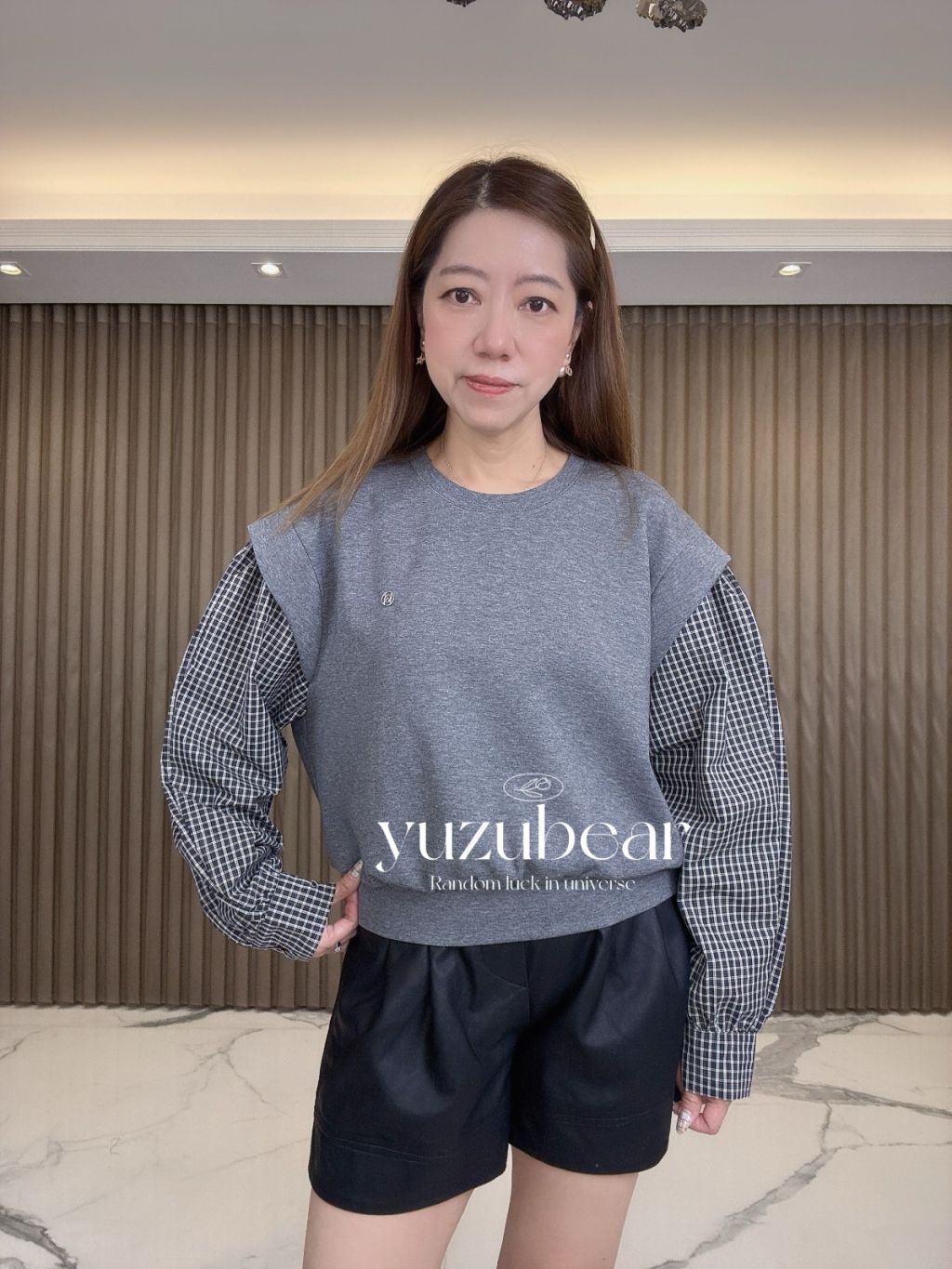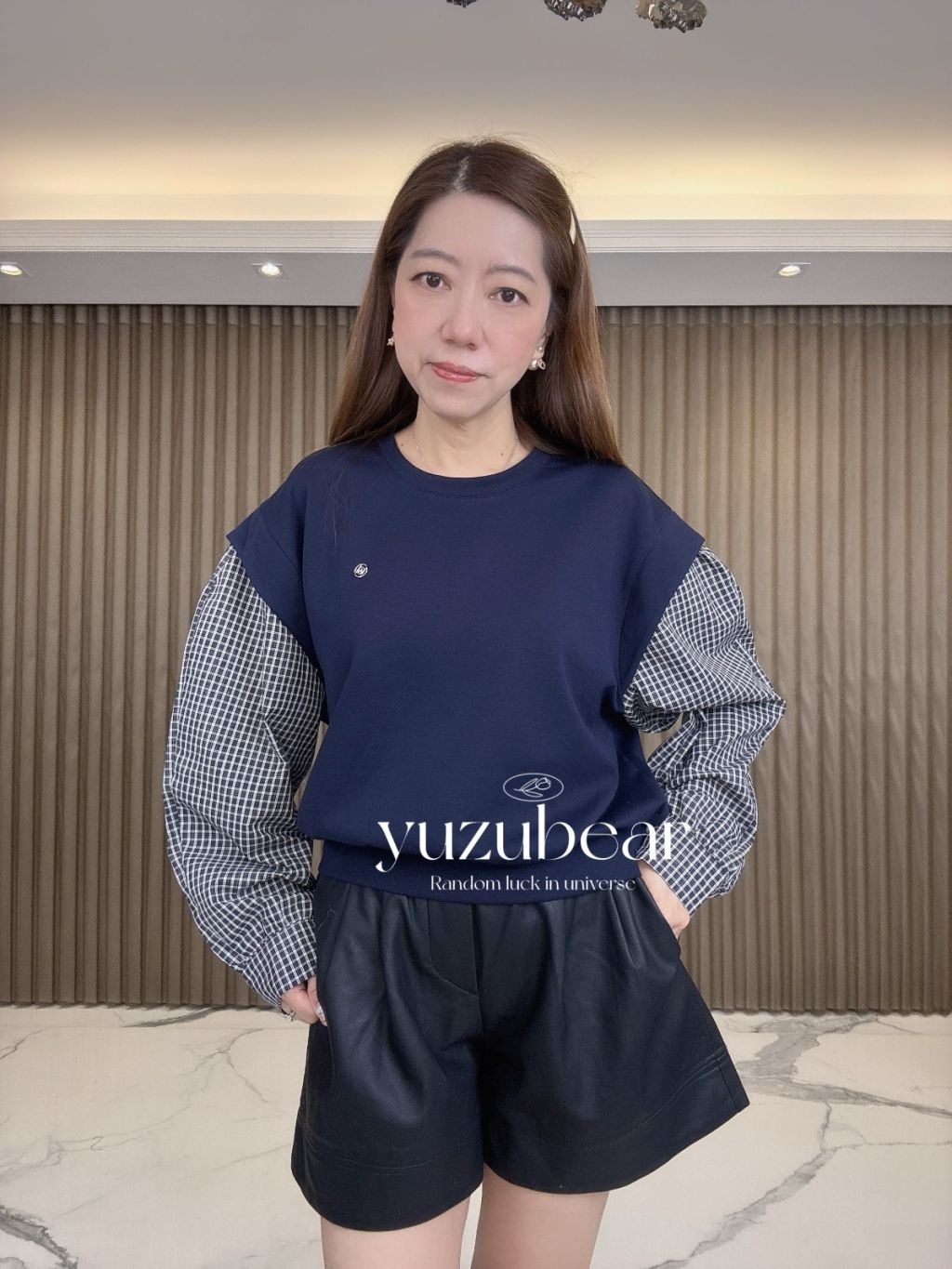 AU71 韓國高質格子袖假兩件上衣【現貨】