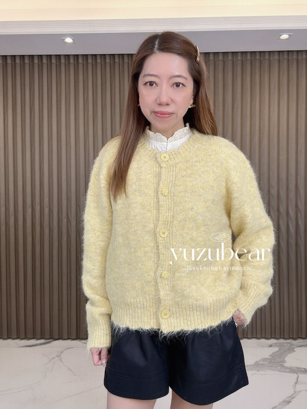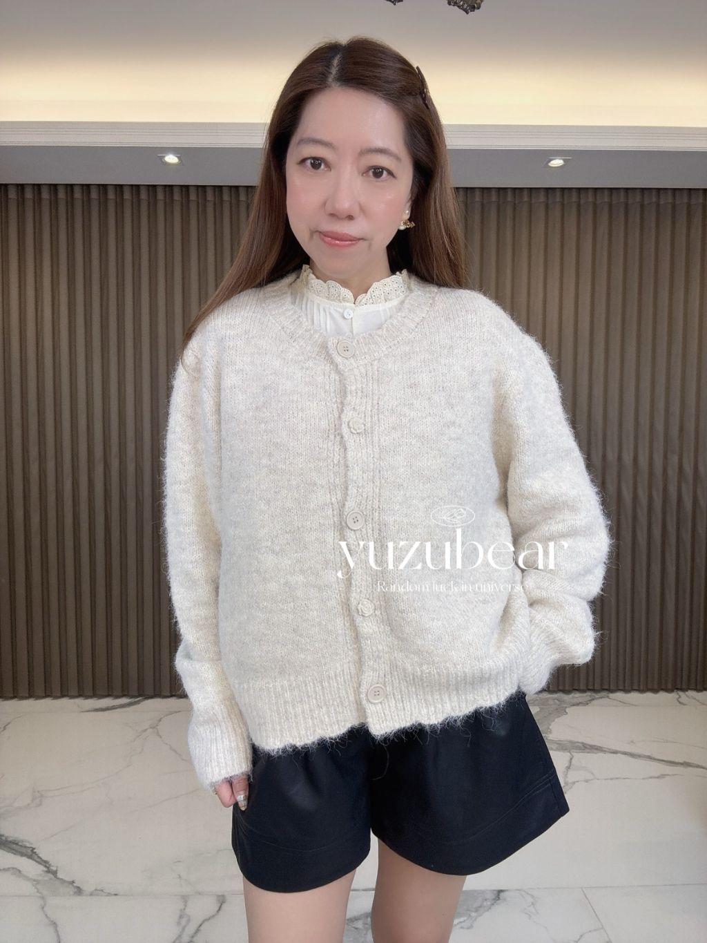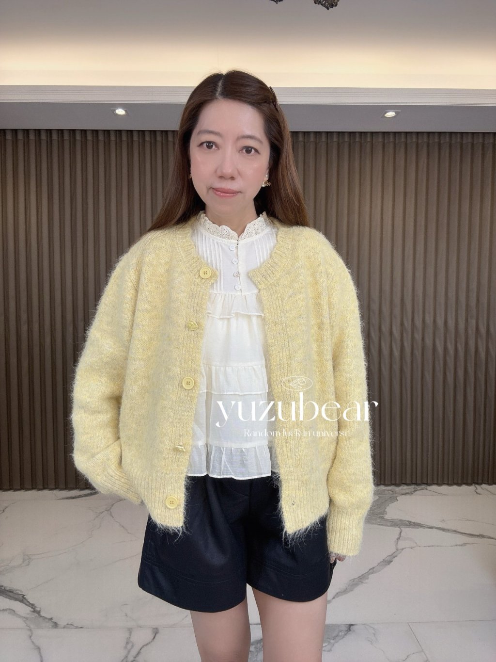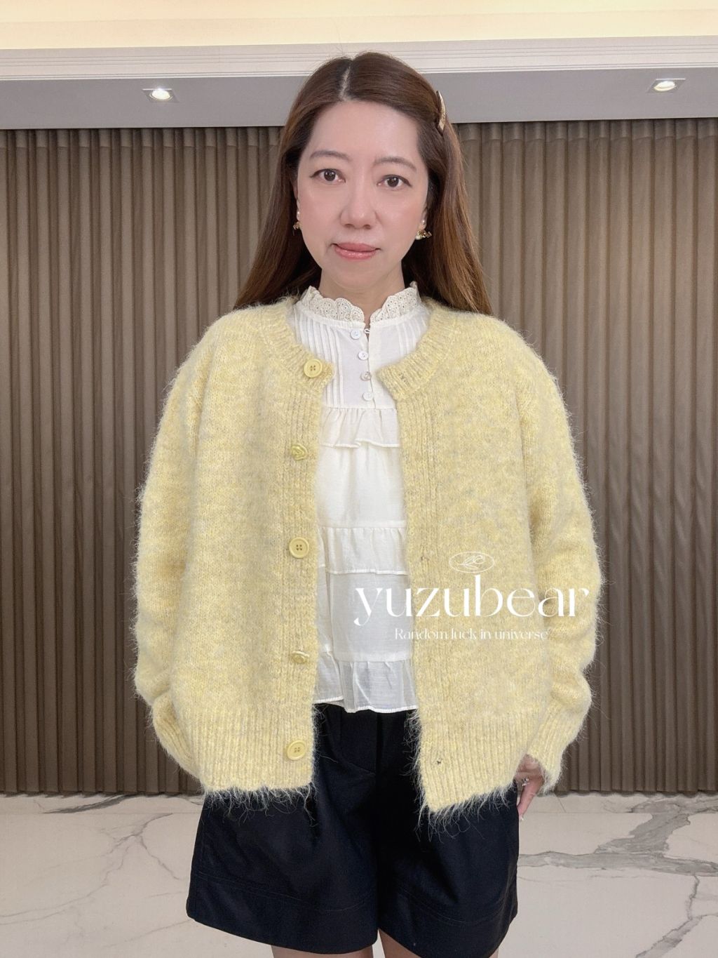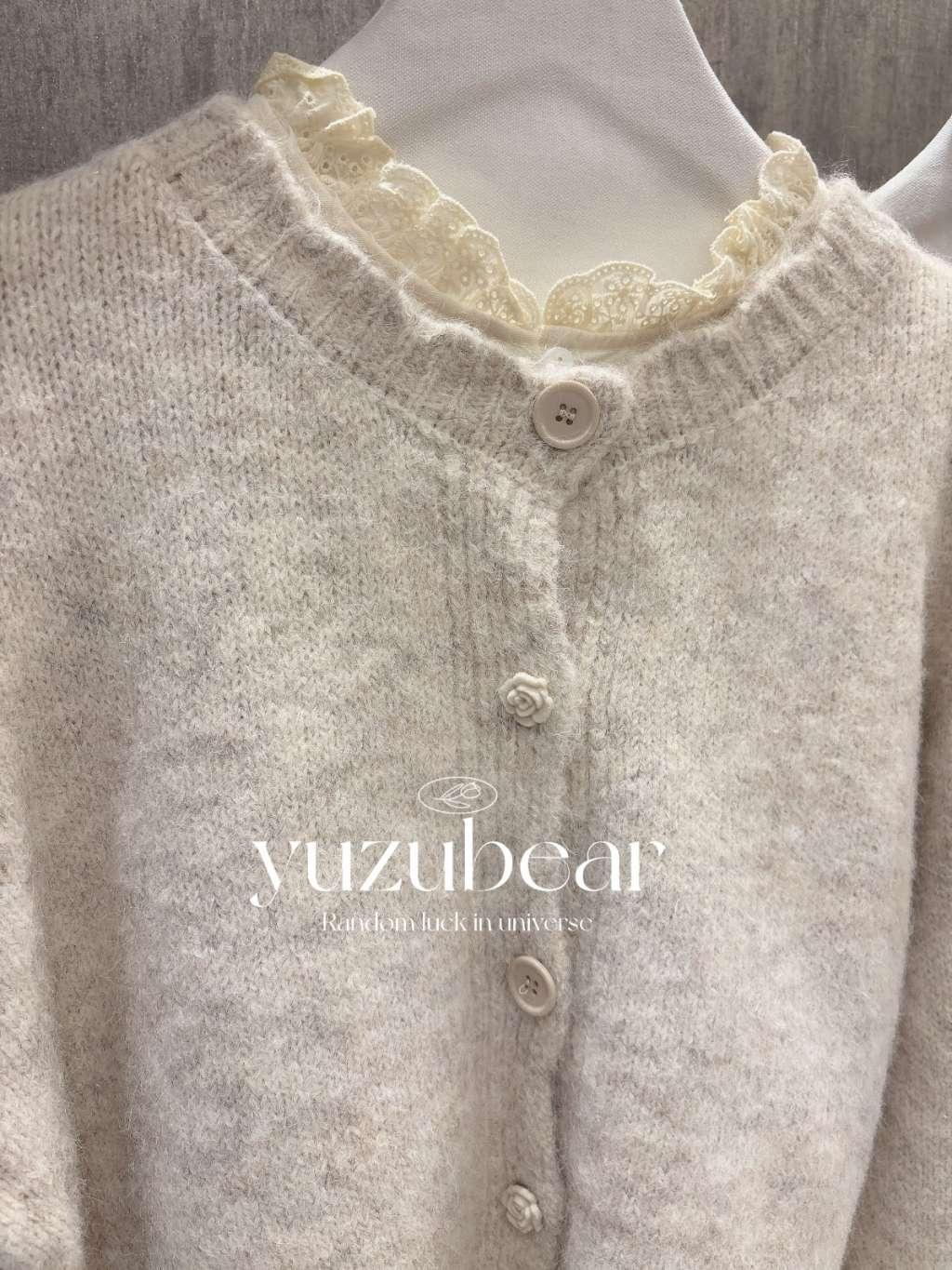 AU87 韓國高質玫瑰鈕混綫波浪邊開胸冷衫外套(混羊毛)