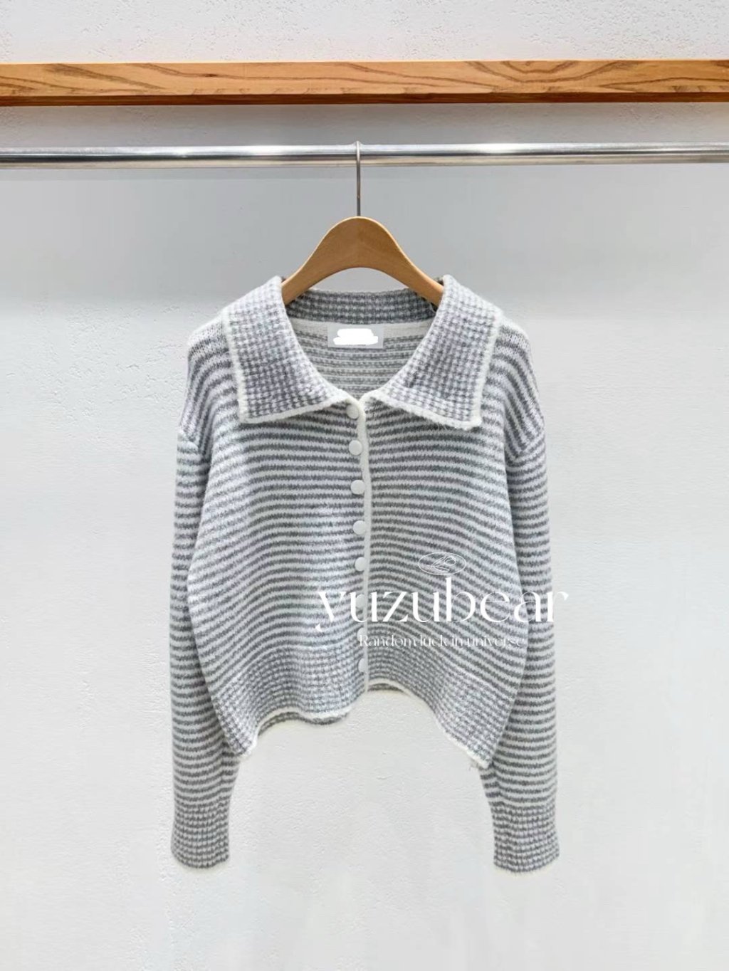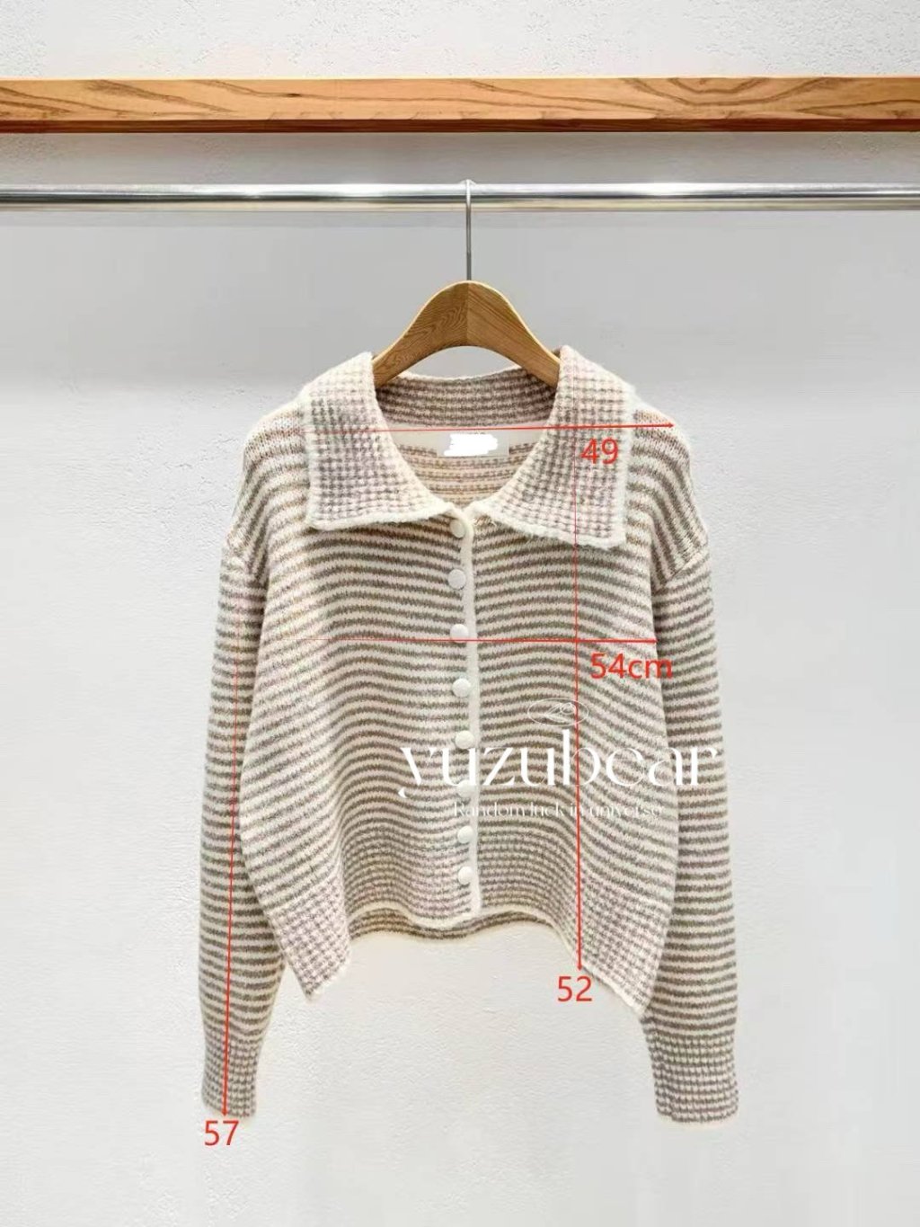 主頁 IA48 韓國高質間條翻領冷衫外套