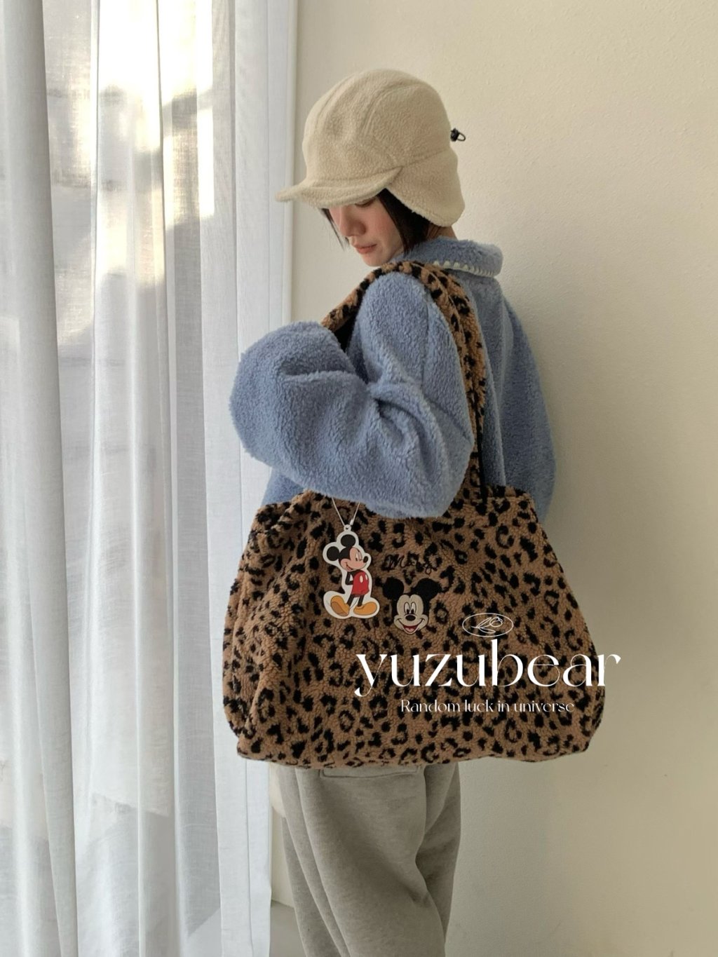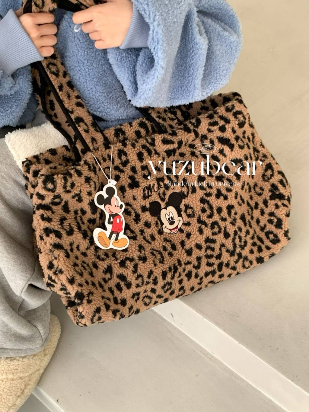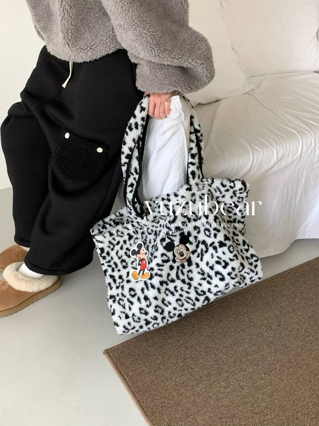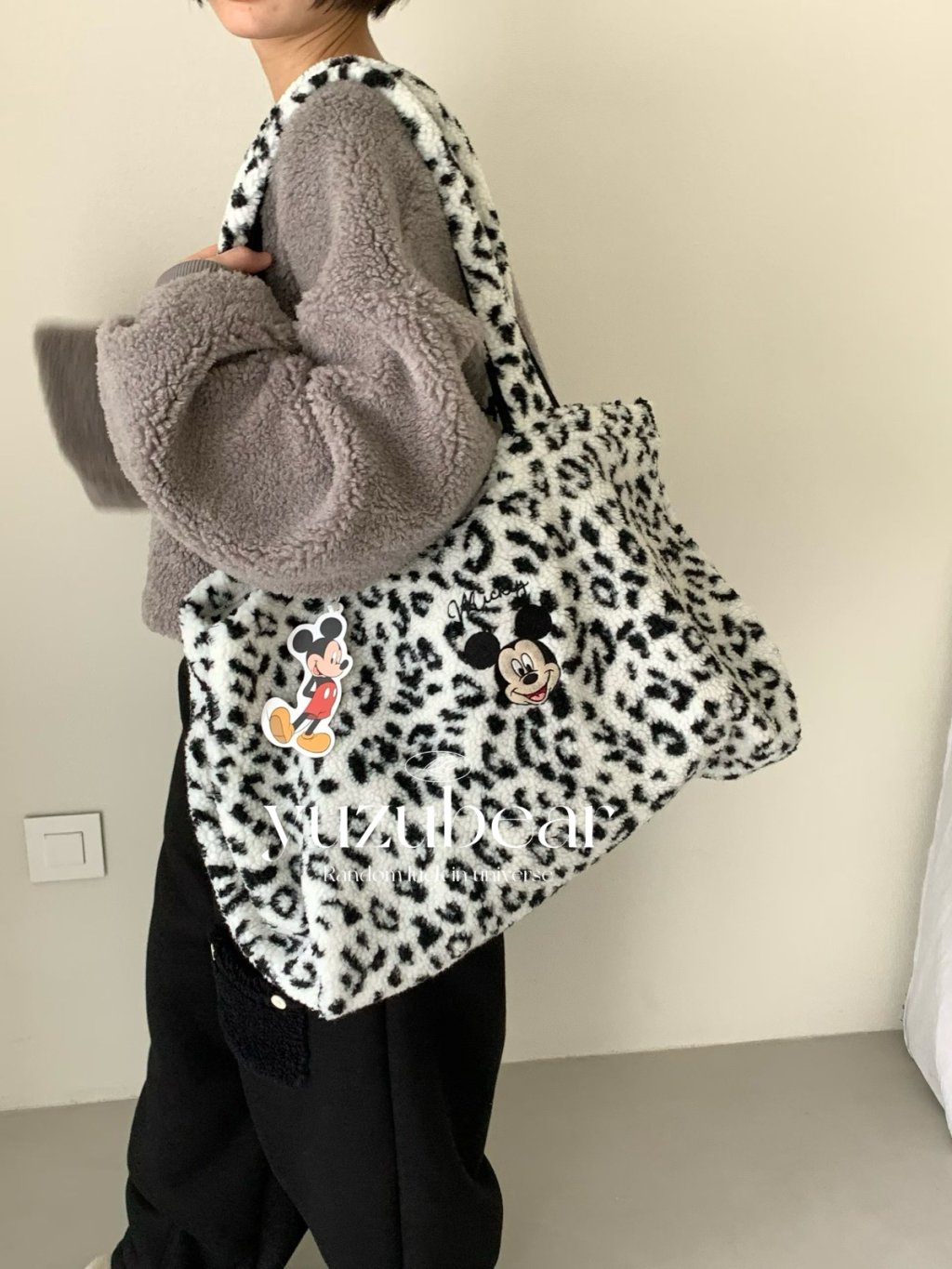 AU129 韓國高質米奇豹紋羊羔毛袋