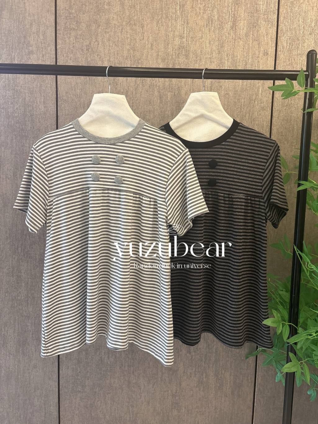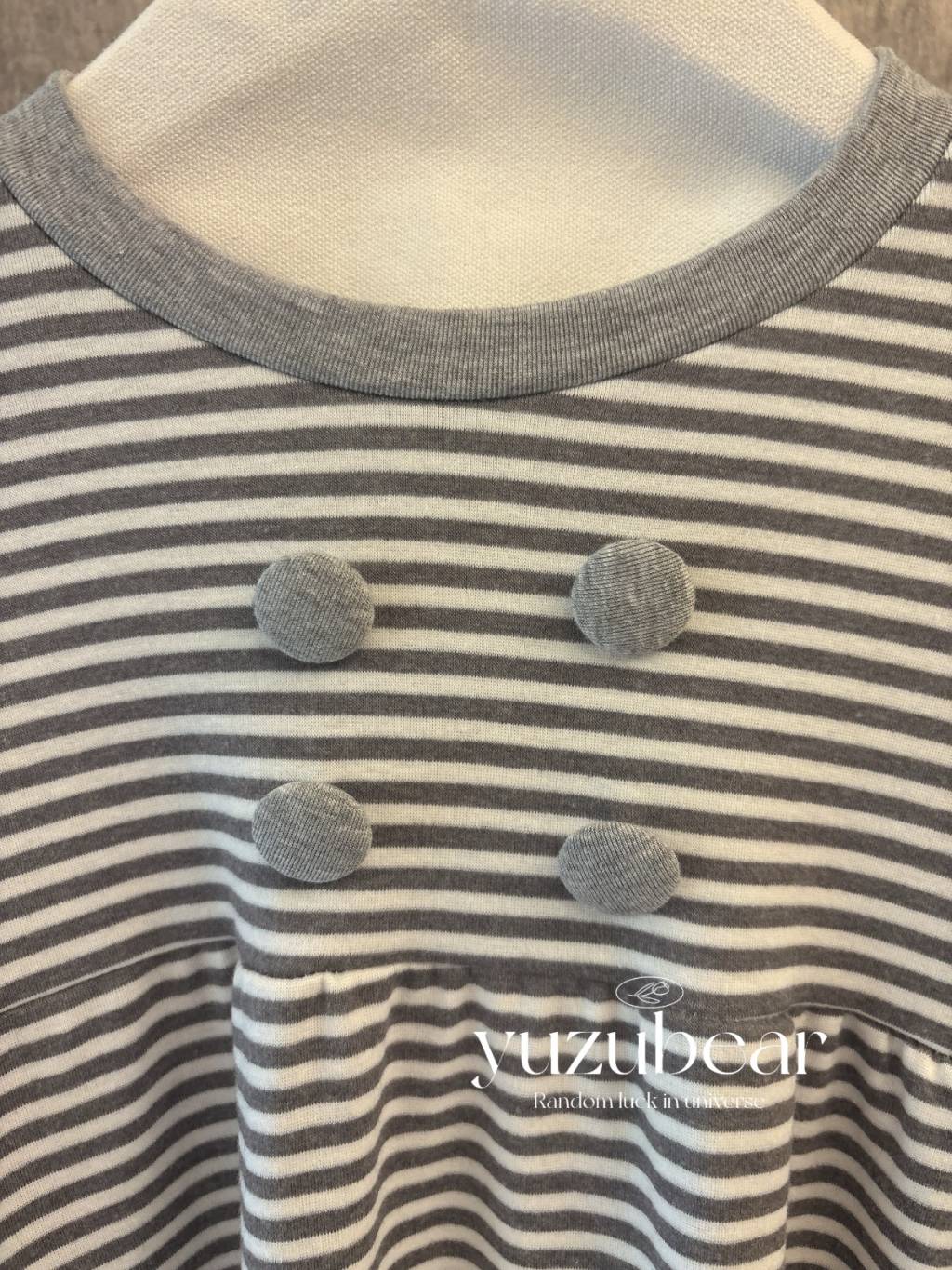 SS118 韓國高質間條布包鈕扣棉質上衣