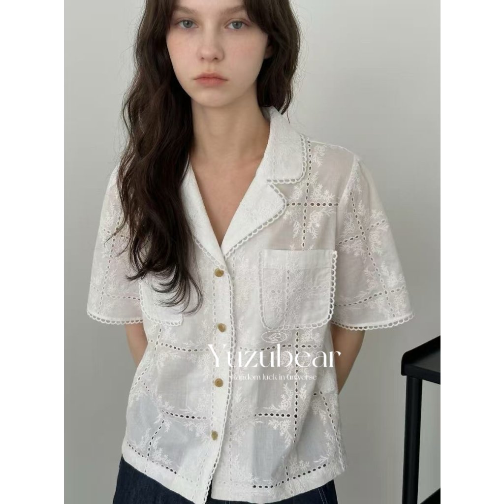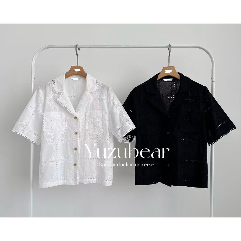 AG35 韓國高質刺綉格紋開胸blouse