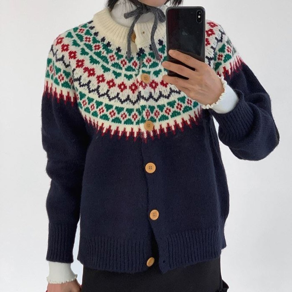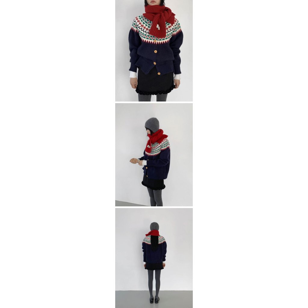 KE20 韓國復古風拼色冷衫開胸外套