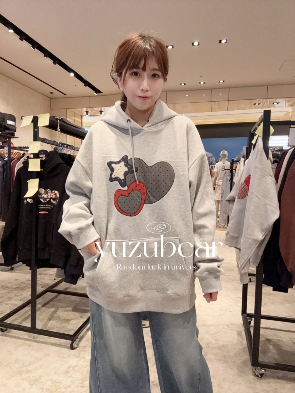 AM19 韓國潮牌ambler - 波點心心加絨連帽衛衣(灰色)