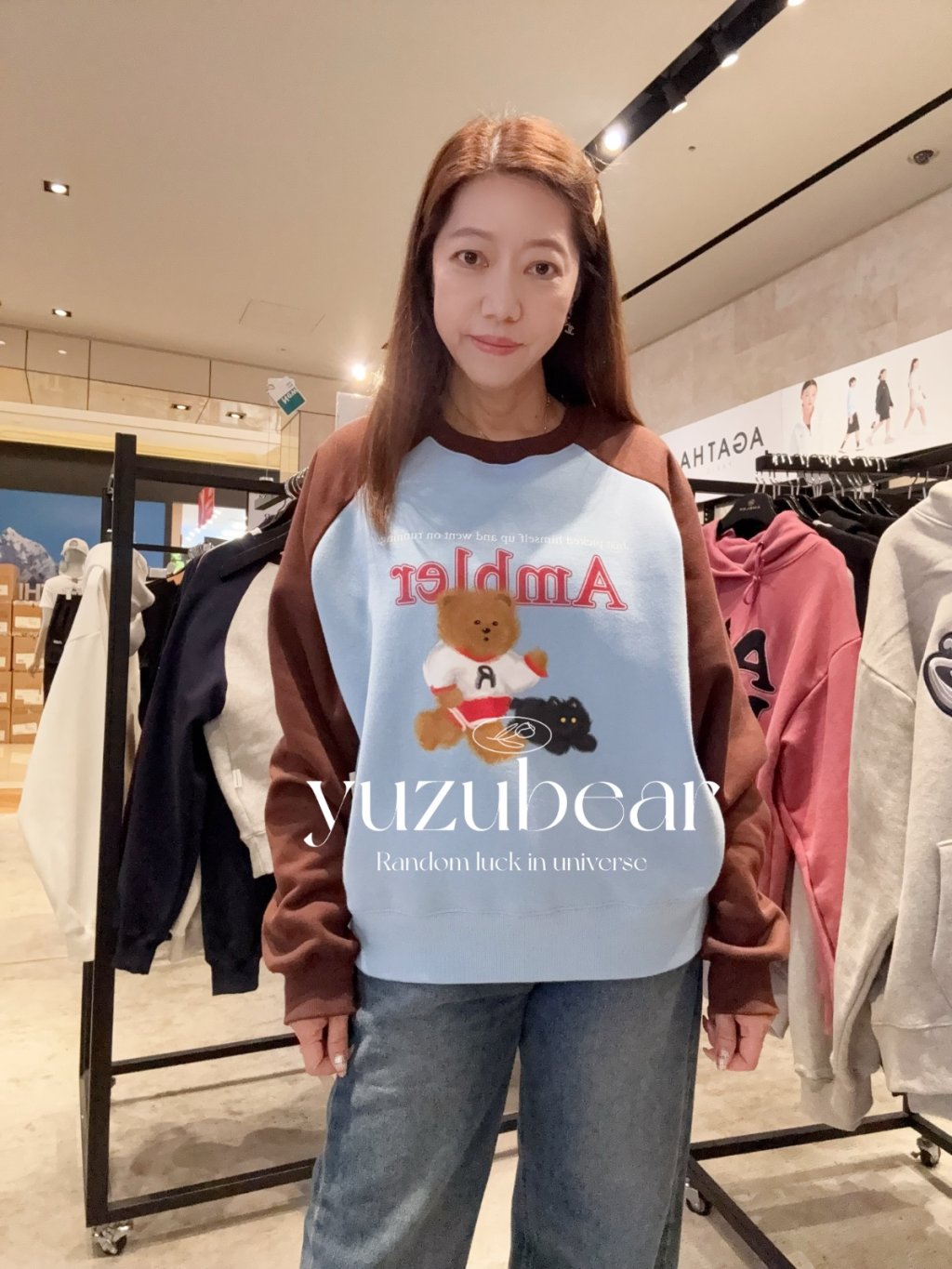 AM28 韓國潮牌ambler - 熊仔牛角加絨衛衣(啡x淺藍)