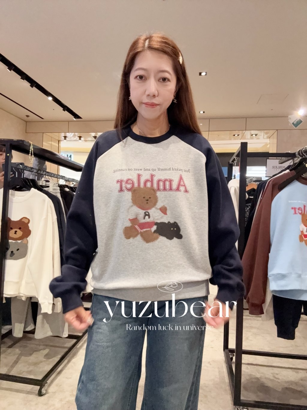 AM29 韓國潮牌ambler - 熊仔牛角加絨衛衣(灰色)