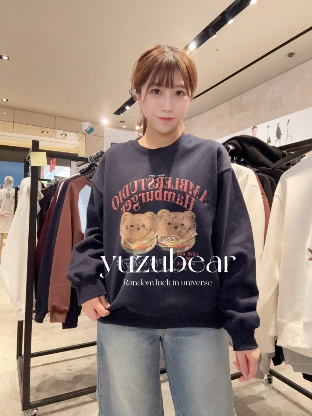 AM39 韓國潮牌ambler - 熊仔漢堡加絨衛衣(深藍)