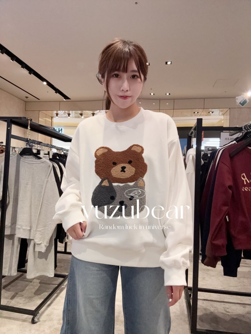 AM44 韓國潮牌ambler - 羊羔毛熊仔貓頭加絨衛衣(米白)