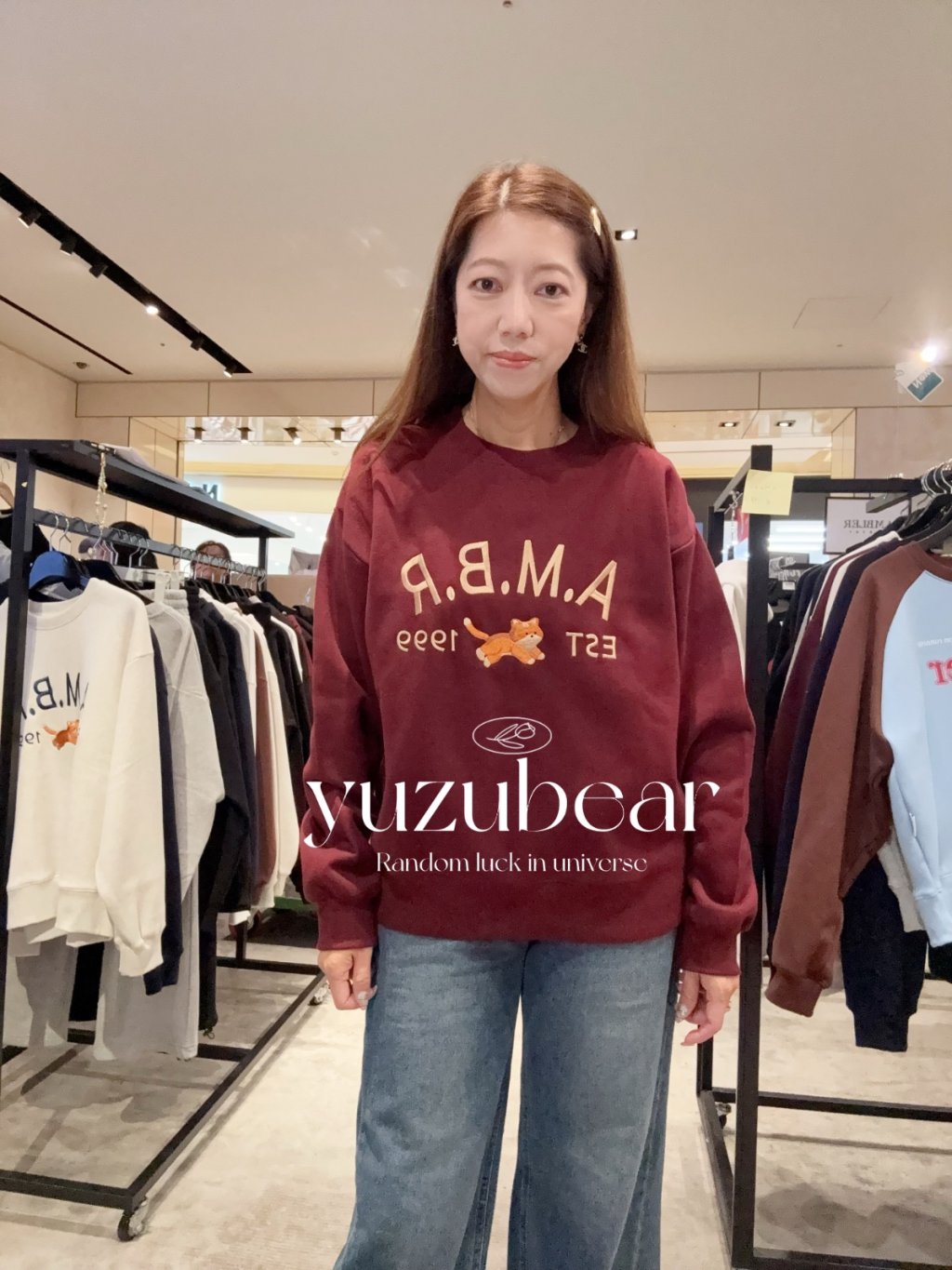 AM47 韓國潮牌ambler - 貓貓A.M.B.R加絨衛衣(深紅)