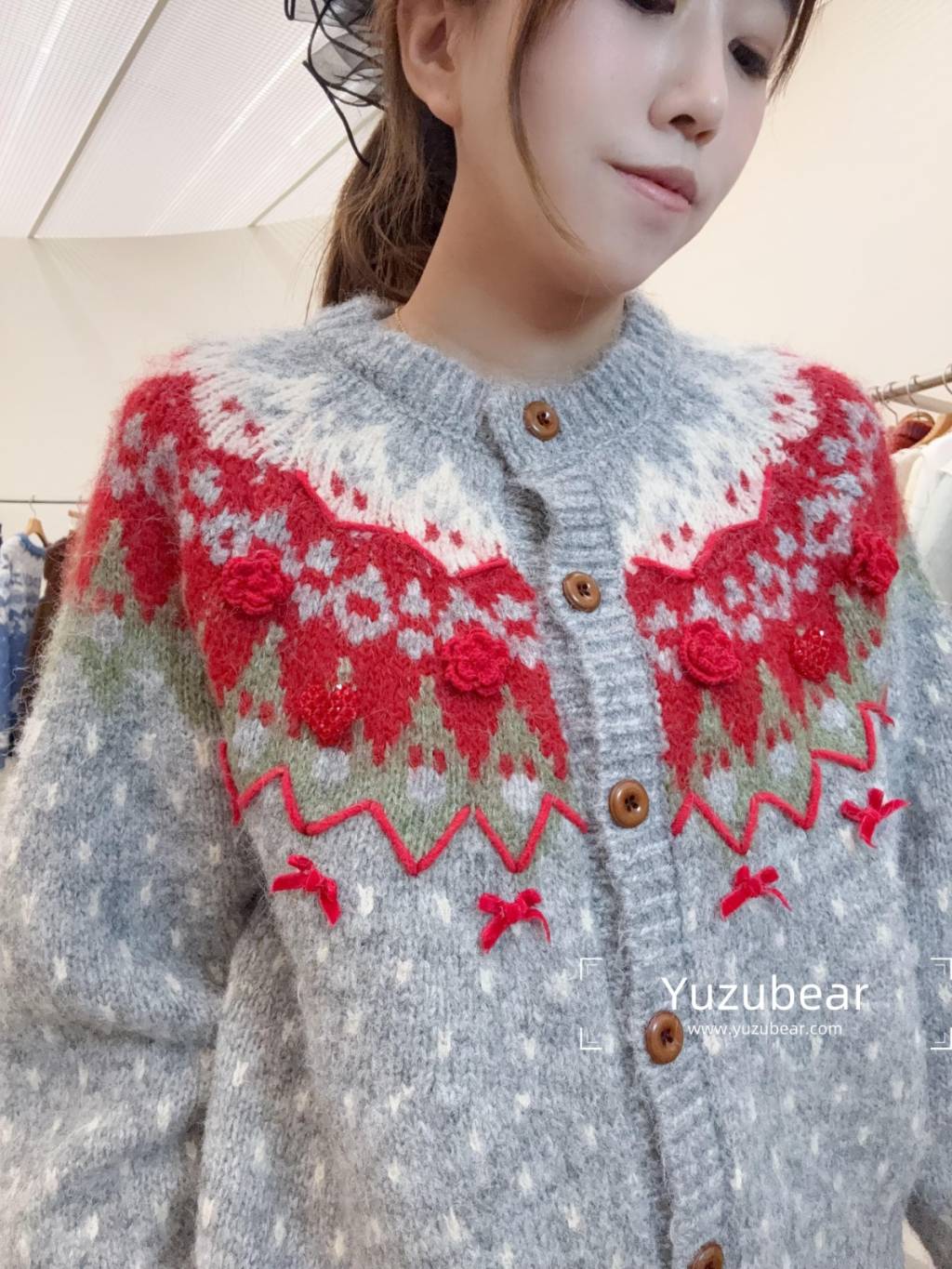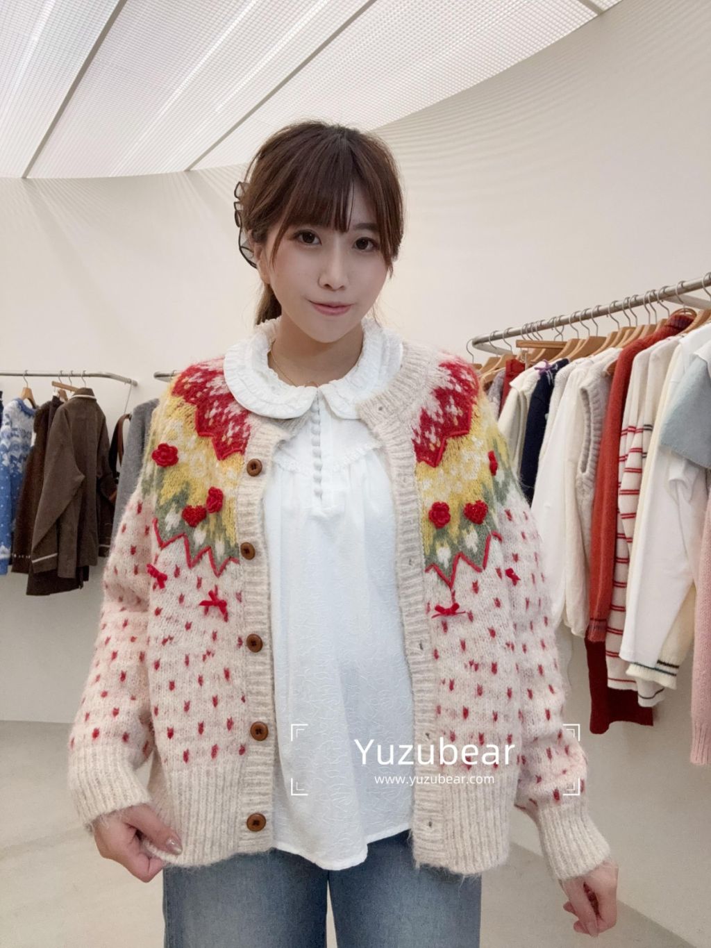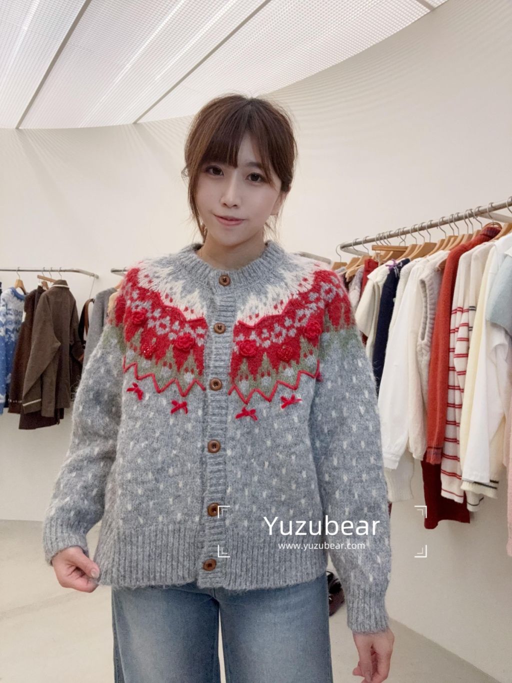 RE3 韓國高質立體刺綉波點冷衫cardigan