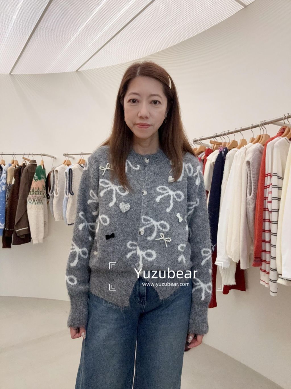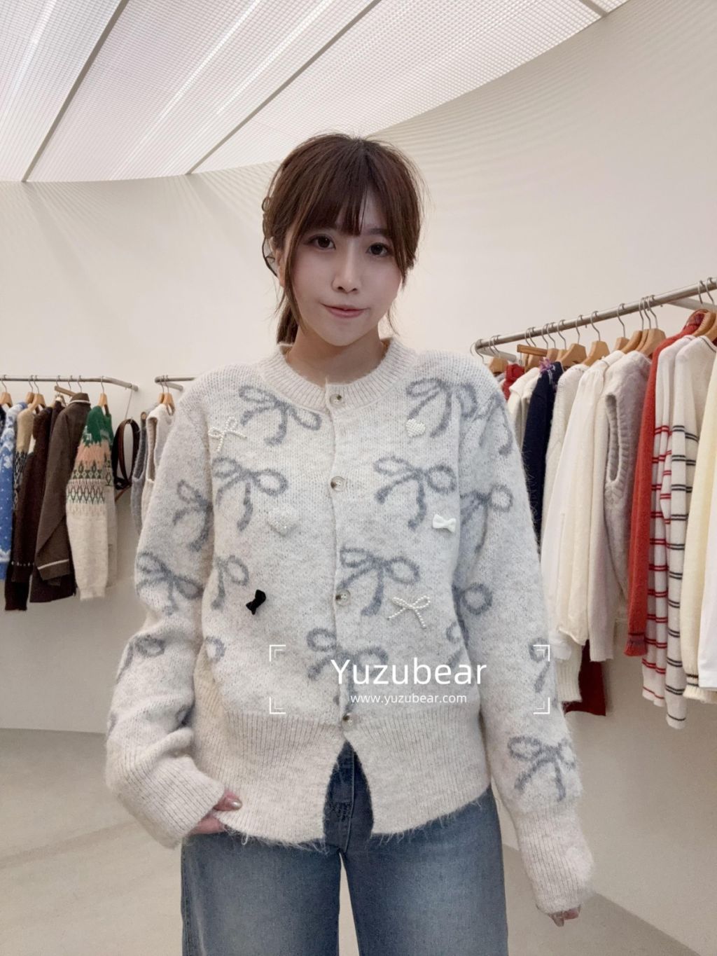主頁 RE4 韓國高質心心蝴蝶結釘珠蝴蝶結冷衫cardigan