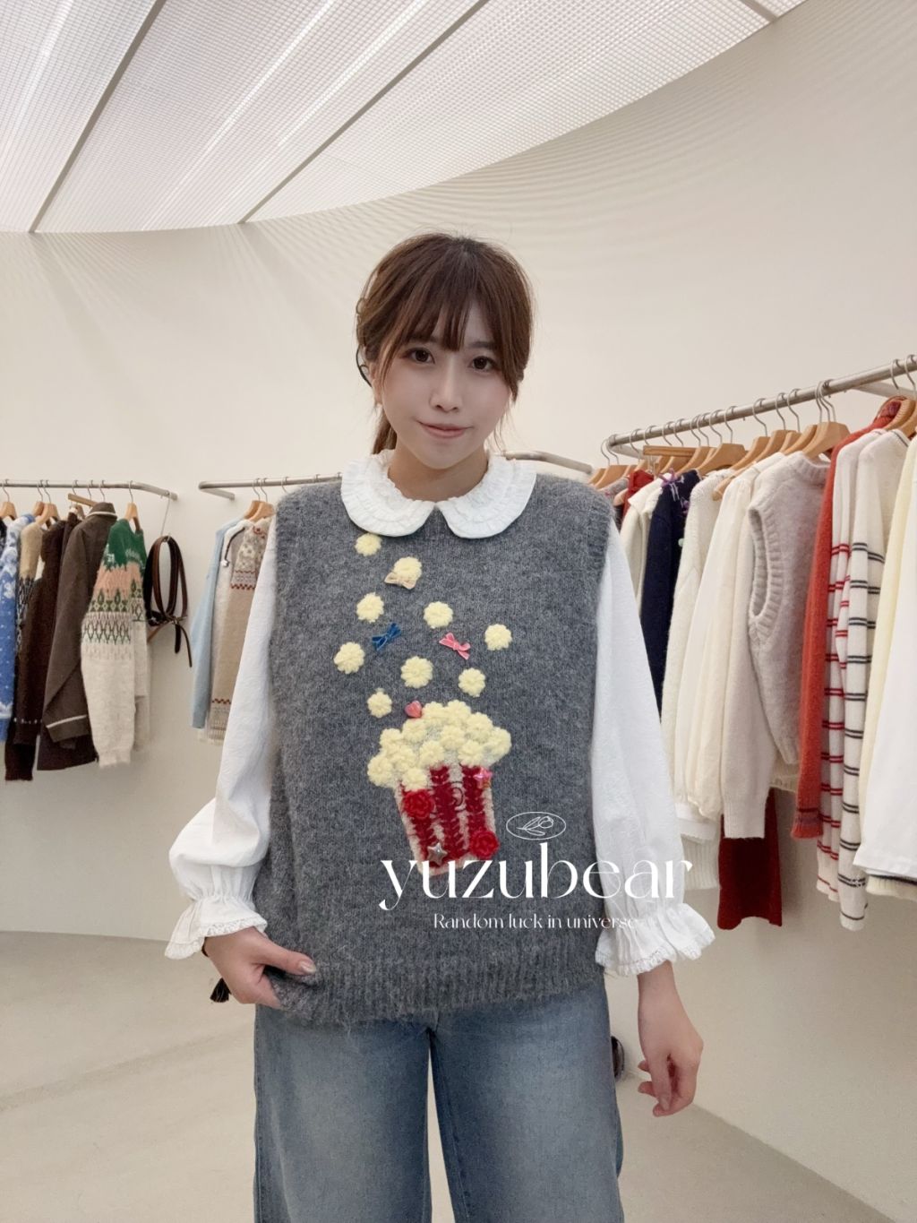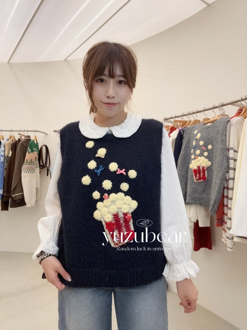 RE12 韓國高質爆谷立體刺綉冷衫背心