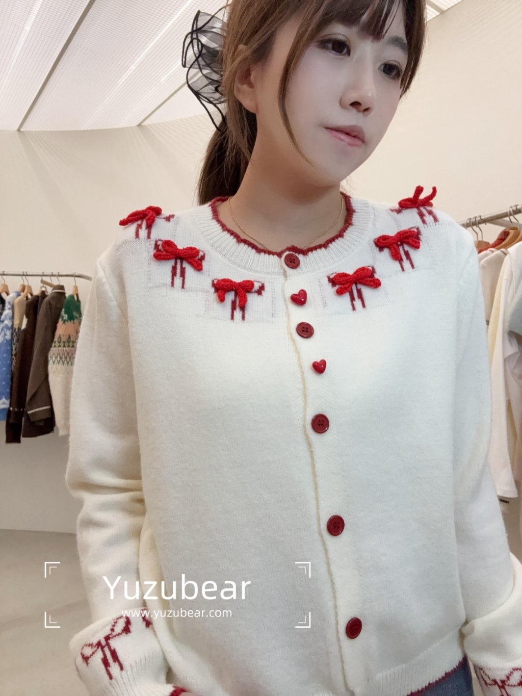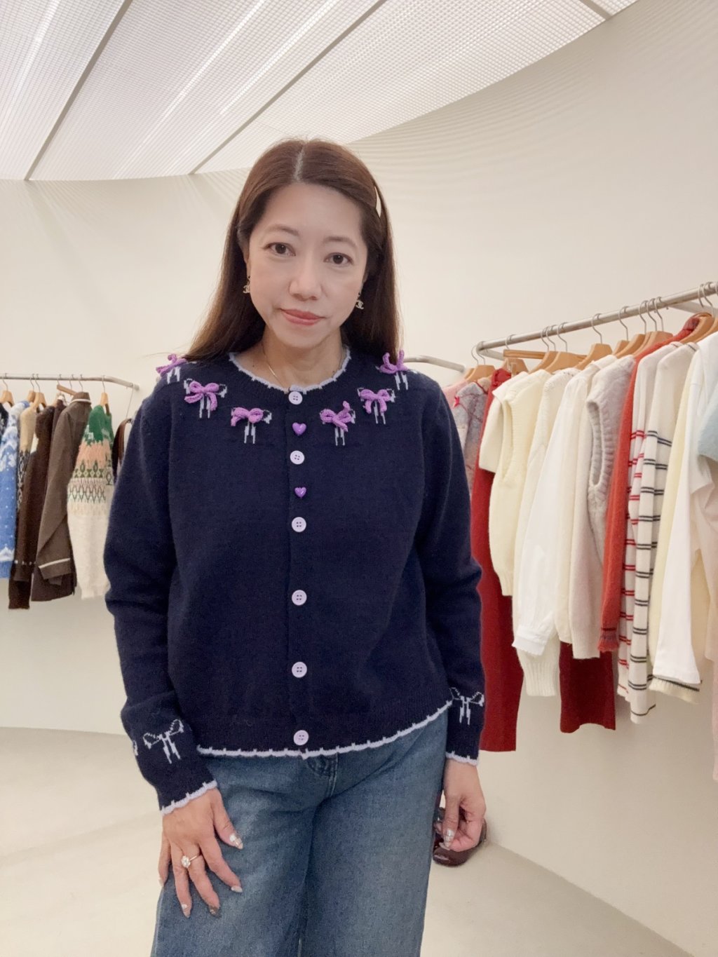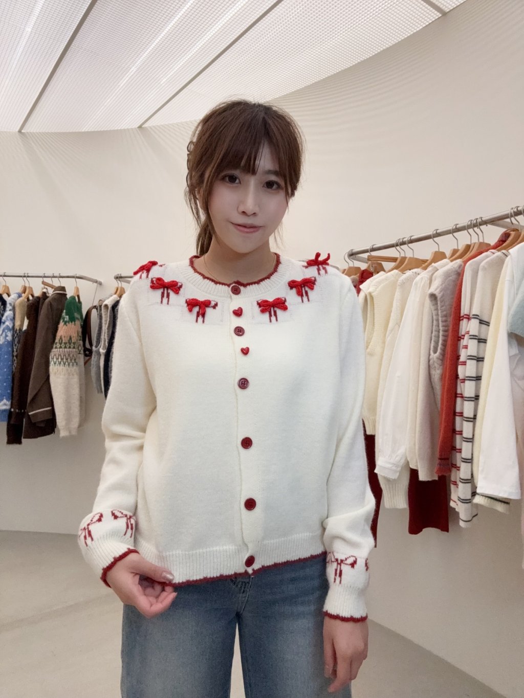 RE31 韓國高質蝴蝶結刺綉開胸冷衫cardigan
